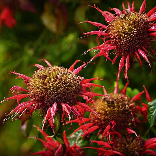 - Monarda (‘Jacob Cline’ Scarlet bee balm) — height 3'–5'