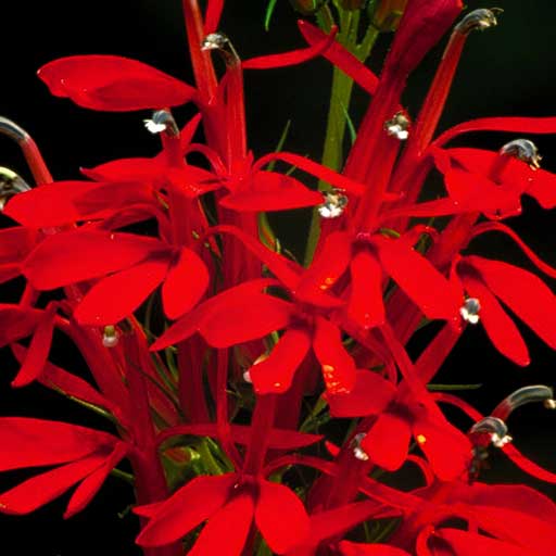Lobelias are very showy perennials and produce large amounts of nectar. Although bees cannot see the red cardinal flower, bumble bees are attracted to the blue lobelias. Lobelias can be found naturally in areas with moist soil; however, they adapt well to a garden setting with some additional water. These plants may prefer a little afternoon shade in the South and may benefit from being in the shadow of a taller plant.