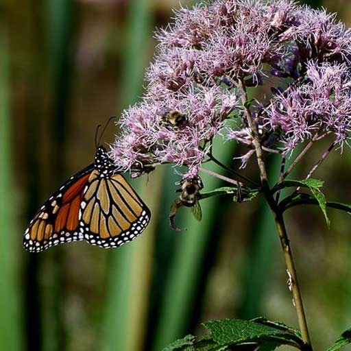 Joe-pye-weed is also known as queen of the meadow as it reigns supreme with large flower heads in the fall. This sun-loving perennial is found in sunny ditches and forest edges throughout the central and eastern US. Eutrochiums reach from 5-7 feet and should be planted in the back of the garden. This plant is a must have for pollinators. Many bee and butterfly species visit this plant for nectar, and birds will eat the seeds. Cut back the dead stems as new foliage emerges in the spring.