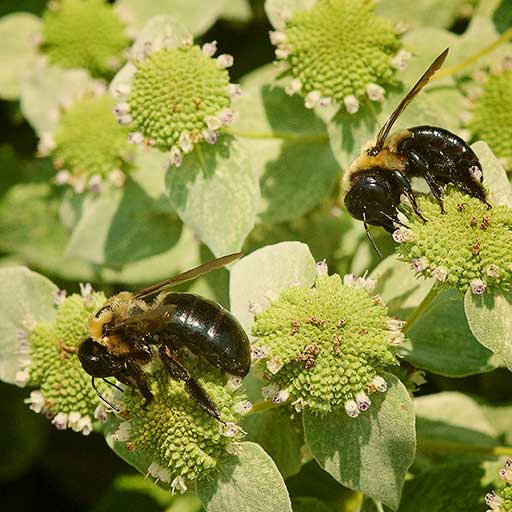 Beebalm makes up a large group of perennials with various species and cultivars. All are great pollinator plants and attract different pollinators depending on the species. Beebalm prefers full sun and flowers in mid-summer. While the red-flowered bee balm is most seen in gardens, try to plant one of the natives listed below to attract more diverse pollinators.