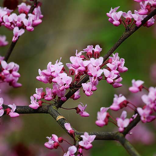 - Cercis canadensis (Redbud) — height 20', spread 15'