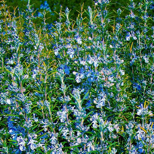 - Rosmarinus officinalis (‘Tuscan blue’ Upright rosemary) — height 6'